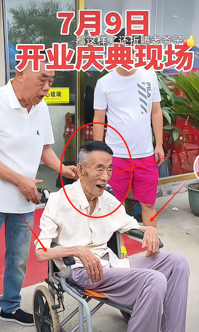 然而这群儿子竟然在如此酷热的天气中,推着老爷子去参加饭店的剪彩仪式,简直不要太离谱!