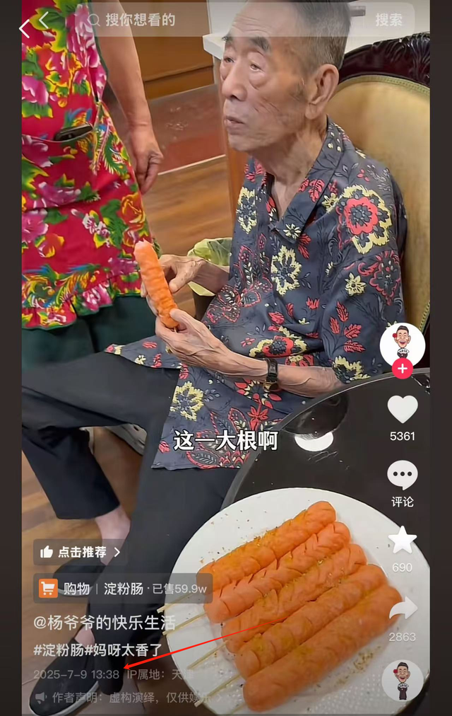 因为就在杨少华老爷去世当天,三儿子杨伦还更新了一条跟老爷子一起出镜带货的视频,视频中杨光跟杨少华老爷子所带的货品为“淀粉肠。”